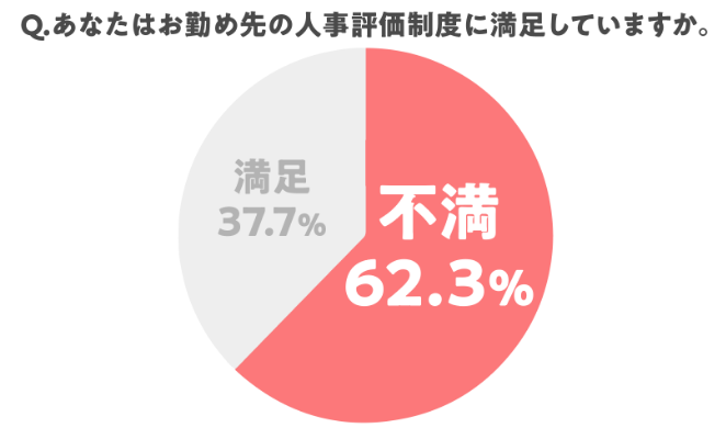 実際、日経BPコンサルティングが行った調査によると「62.3%の人が勤め先の人事評価制度に不満を抱えている」という結果が出ています。